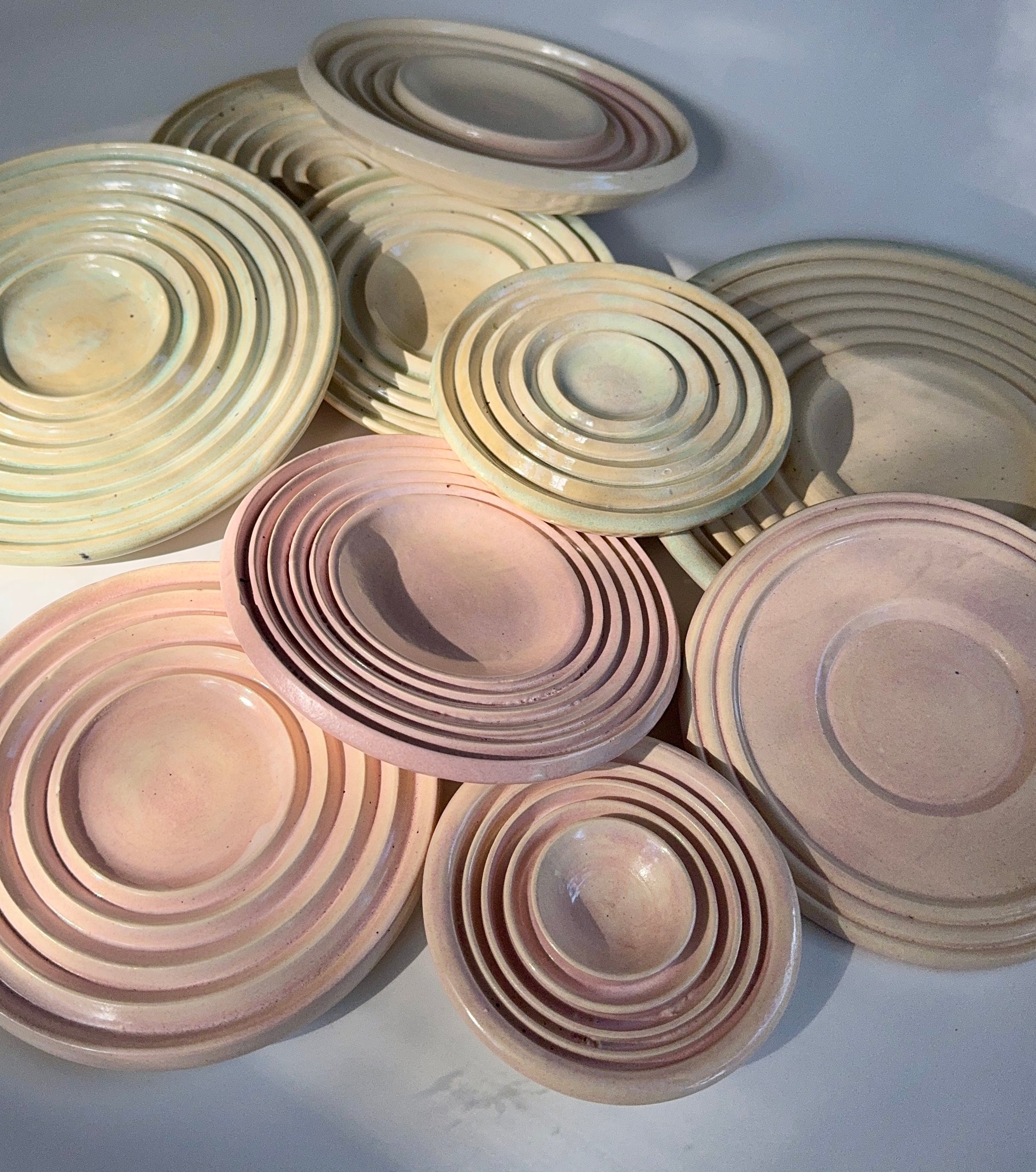 A large planter with floor drain & optional matching Ripple Drip tray. Glazed in runny sea-foam aqua and cream fluxes with a gloss finish.