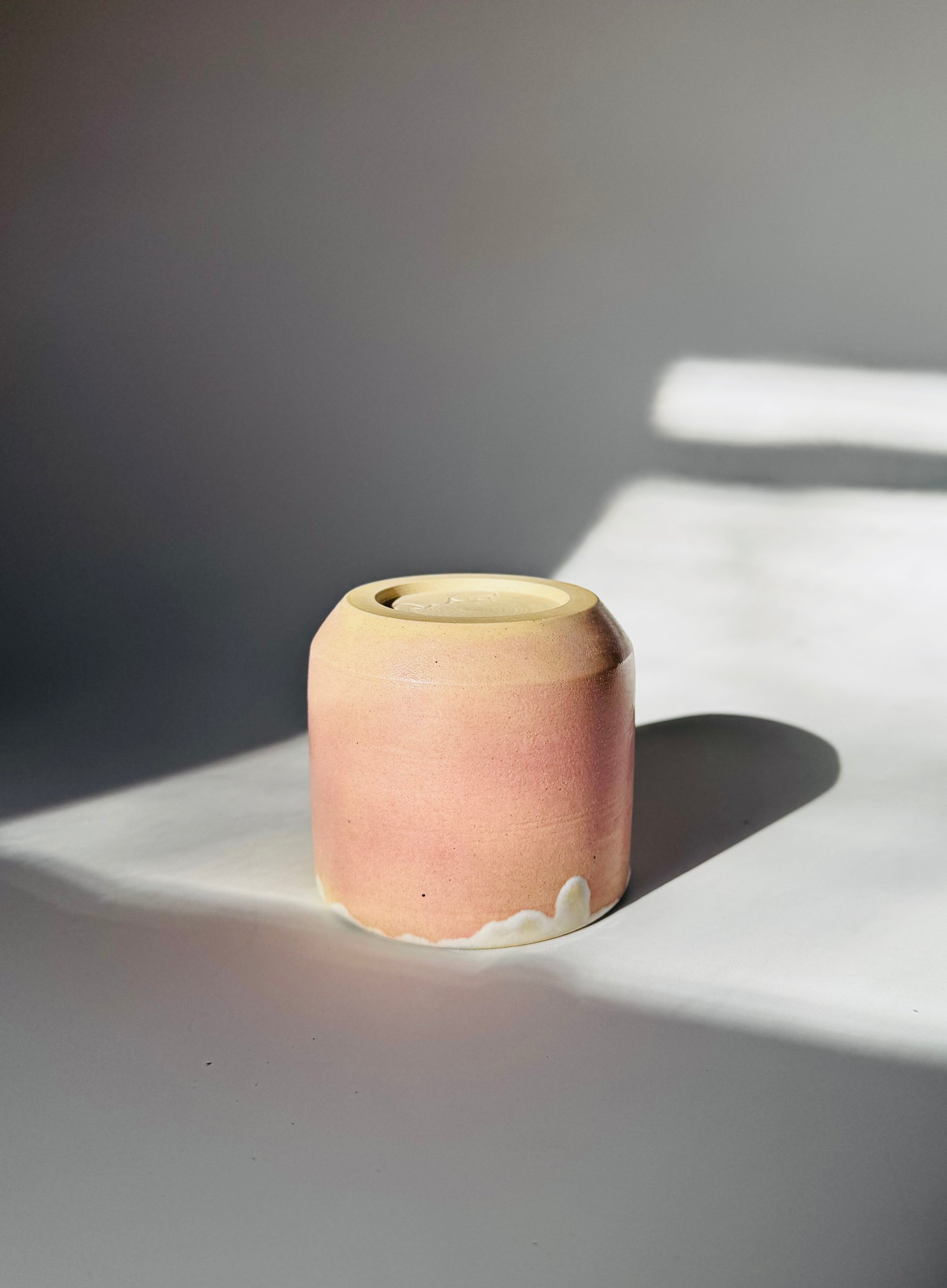 - Lip motif stamped using black underglazes to transfer from my own lips; this form of expression is potentially toxic & not recommended.